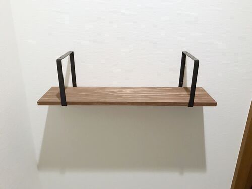 しました。 棚板と、シェルフフレームを買ってきて、取り付けました。 何もなかった壁 いきなりトイレ画像でごめんなさい。 予備のトイレットペーパーとか持ち込んだ本とかiPadとかを、写真左の手すりに置いてました。 材料 シェルフフレームの金具は、二子…
