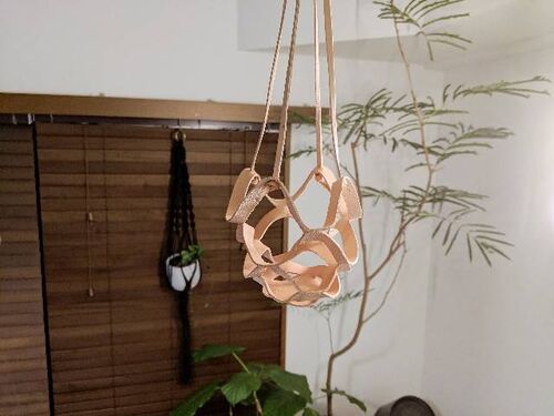 7,8cmの鉢向け用の小さいプラントハンガーです。 仕上がりはこのような感じ! それではつくりかたを。 材料 型紙 この記事のもう少し下に型紙を公開してます 厚さ2mm程度のヌメ革 楽天とか東急ハンズとかで売ってます。 革ひも ハギレを細長く切ったものでも…