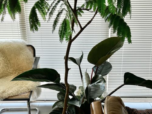 フィロデンドロン・ロジョコンゴ(Philodendron 'Rojo Congo') と フィロデンドロン・バーキン(Philodendron 'Birkin') の美しい寄せ植えを、都内のACTUSにて購入しました。大きめの9号鉢です。
