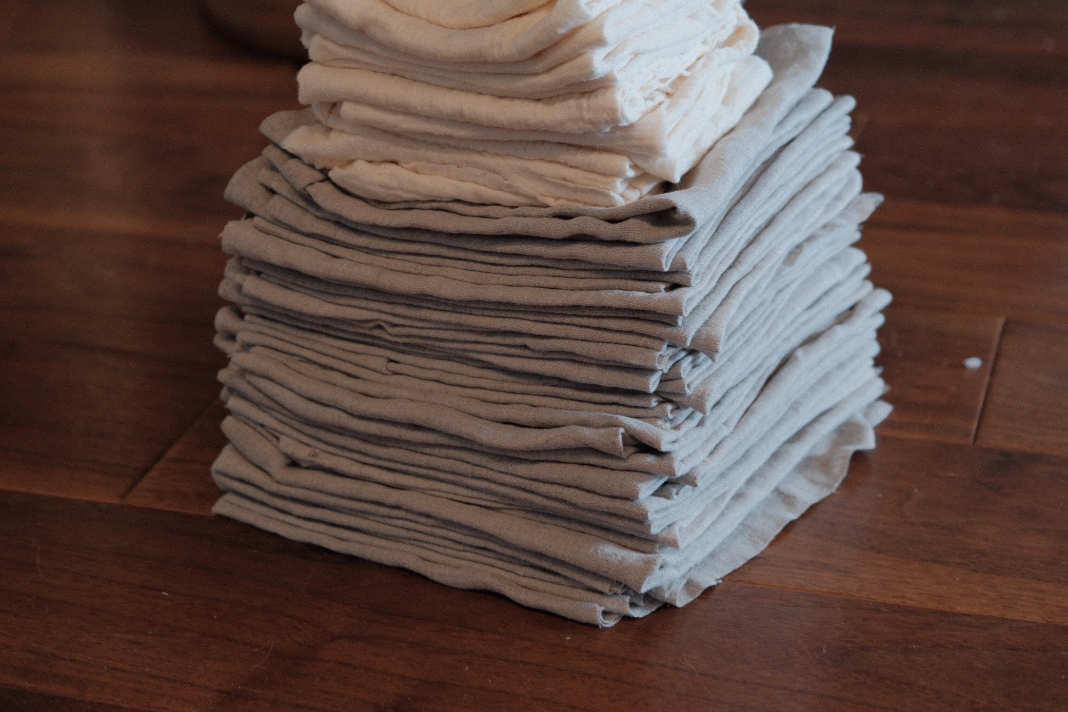 古くなって捨てる服とかタオルとかシーツを小さめに切って、使い捨て雑巾にしている。