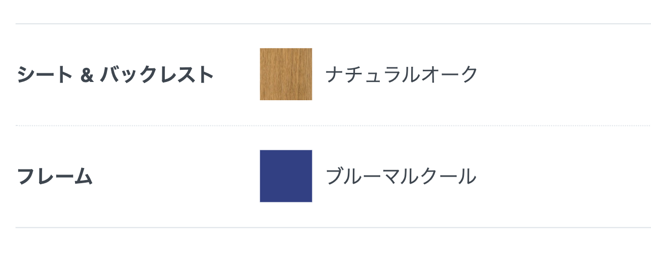 シート&バックレストは「ナチュラルオーク」、フレームは「ブルーマルクール」にした。